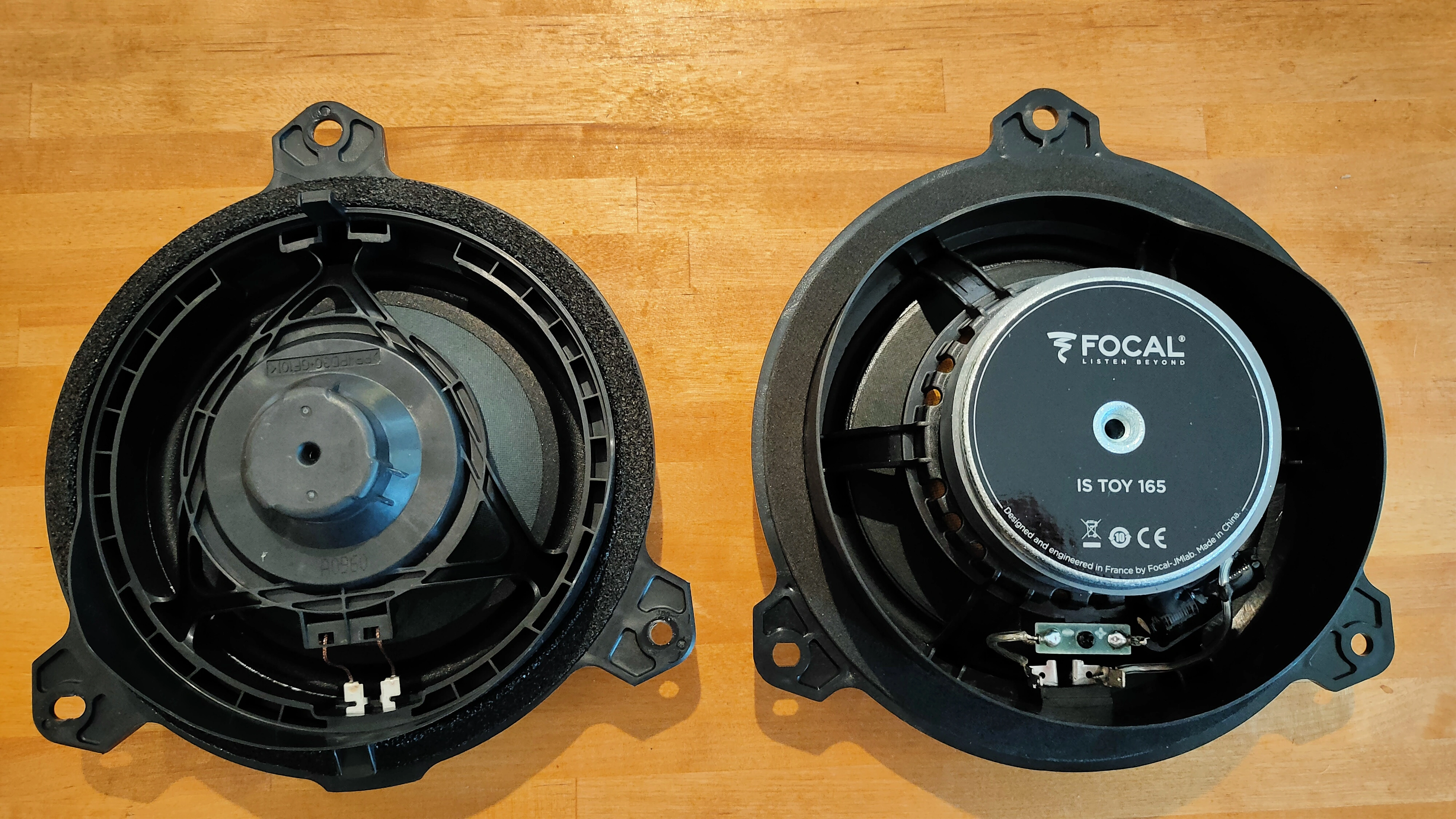 The mounting positions are exactly the same, as are the connectors so you don't need any adaptors of any sort here, even though the kit has loads. The Focal's come with a foam mount that looks better than the OEM
